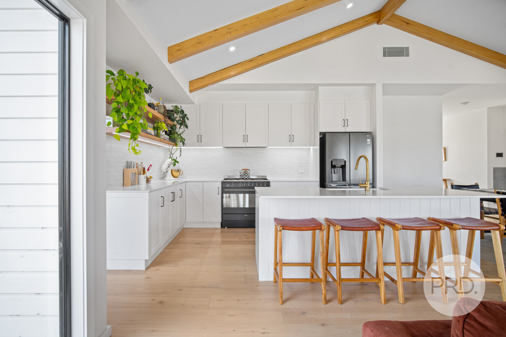 Designed to embrace the natural surroundings, the home boasts soaring vaulted ceilings, expansive double-glazed windows, and multiple living areas that make the most of the year-round sunlight. The heart of the home features a family-sized layout with a gourmet kitchen, complete with a butler’s pantry, flowing effortlessly into dual living zones – ideal for both entertaining and everyday living.