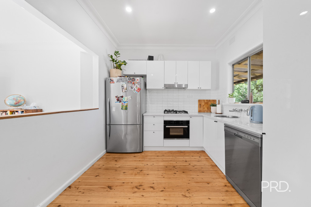 Inside, the home features a light-filled and updated kitchen complete with sleek white cabinetry, quality appliances, and ample bench space, flowing seamlessly over beautiful timber flooring that adds warmth and character throughout.