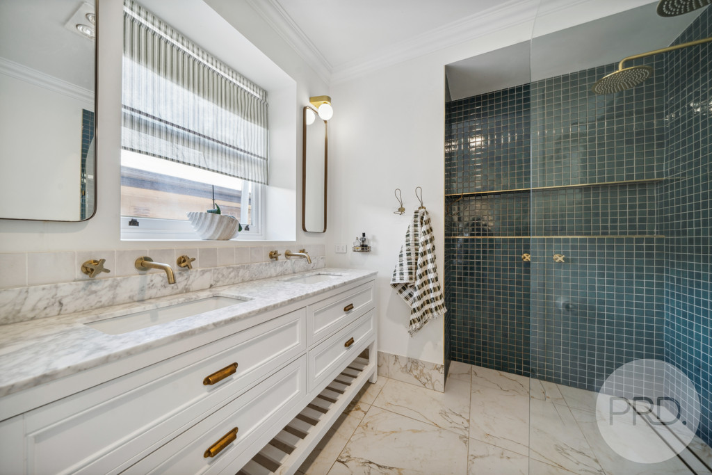 Luxury continues in the bathrooms, where stone benchtops and feature tiles add a refined touch. A state-of-the-art security system provides peace of mind, while the red brick facade enhances the home’s timeless appeal.