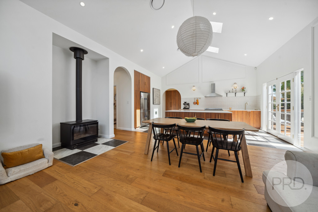 Boasting four spacious bedrooms and two stylish bathrooms, this home has been thoughtfully extended to create an open, airy layout designed for effortless living. From the moment you enter, soaring 10-foot ceilings, polished timber, and floating wood floors set the tone for a warm and inviting atmosphere. Slow combustion heating and reverse-cycle air conditioning ensure year-round comfort.